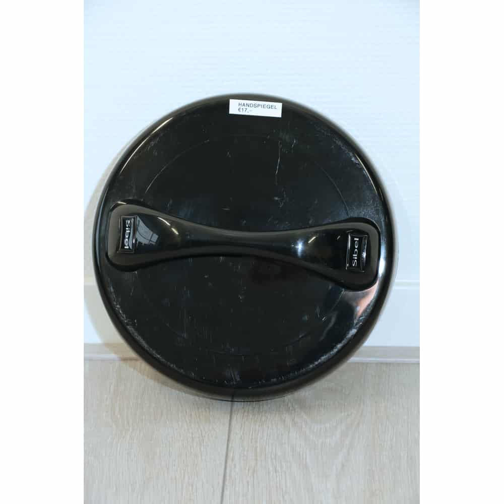 Luxe handspiegel uitgevoerd in glanzend zwarte kunststof met stevige handgreep.