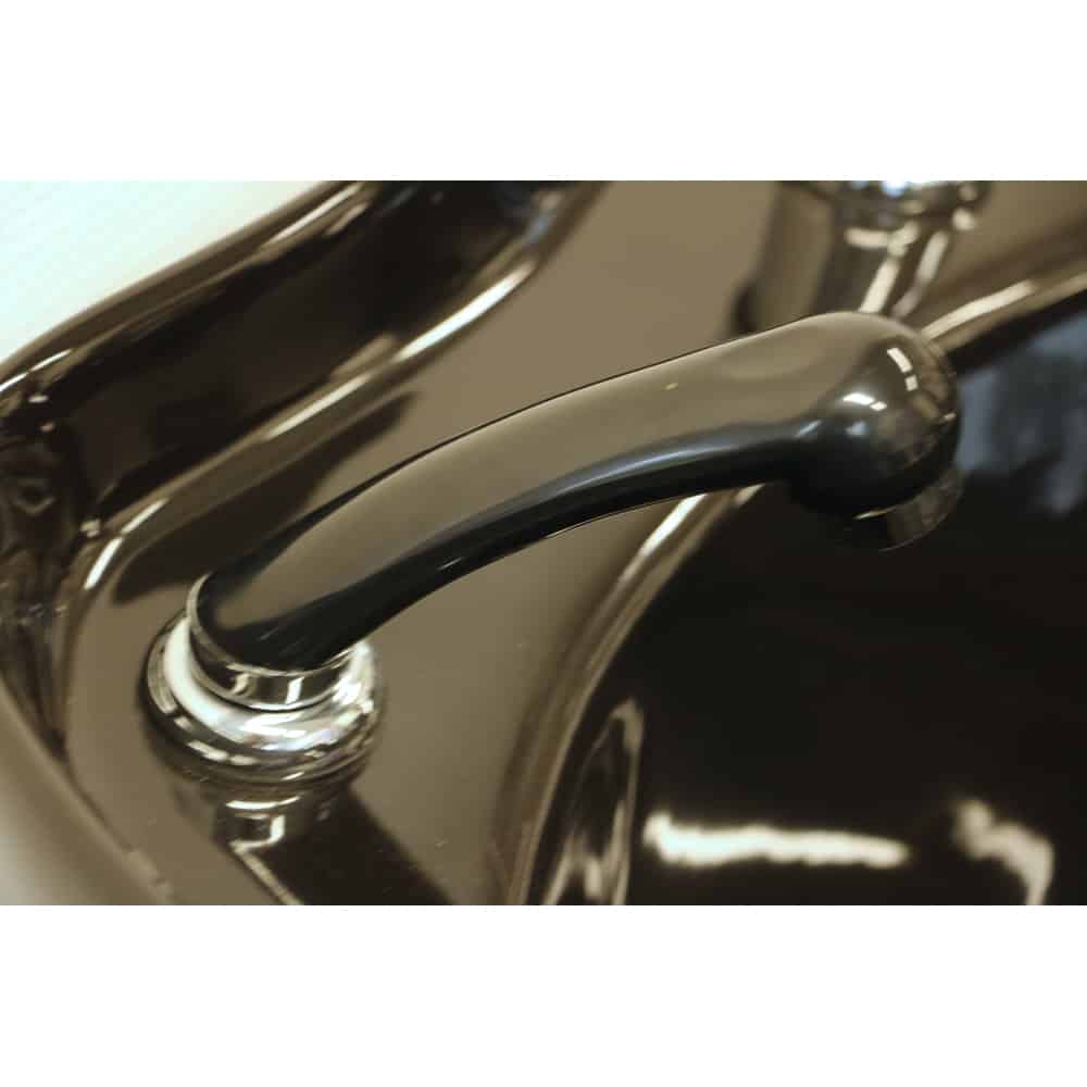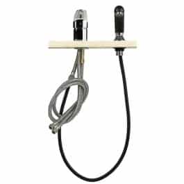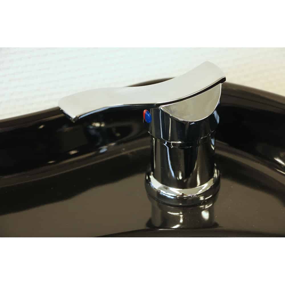 Kranen-set bestaande uit een zilverkleurige mengkraan en zwarte handdouche.
