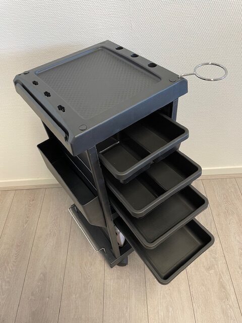 Met 4 lades waarvan 2 onderverdeeld in vakken.